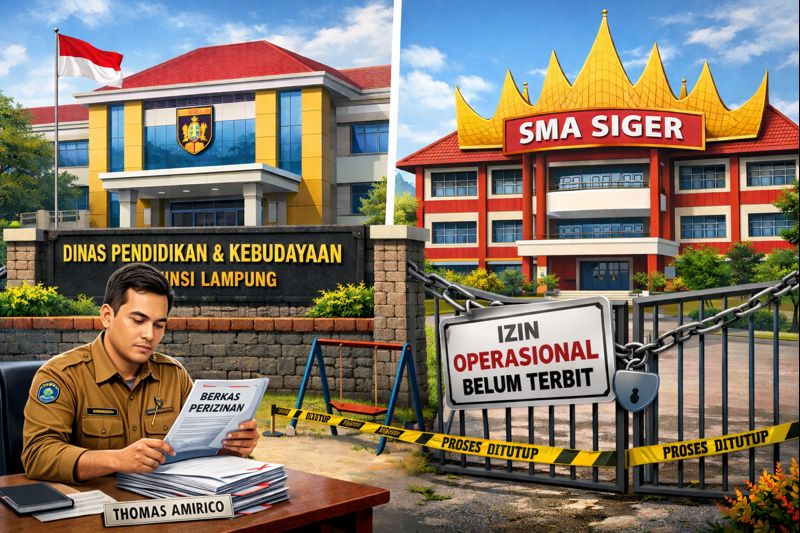 IntegritasNews.co.id, Bandar Lampung – Hingga akhir Januari 2026, izin operasional SMA Siger masih belum diterbitkan. Kepala Dinas Pendidikan dan Kebudayaan Provinsi Lampung,Thomas Amirico menegaskan, belum lengkapnya sejumlah persyaratan administrasi dan teknis membuat sekolah tersebut belum memiliki dasar hukum untuk beroperasi.