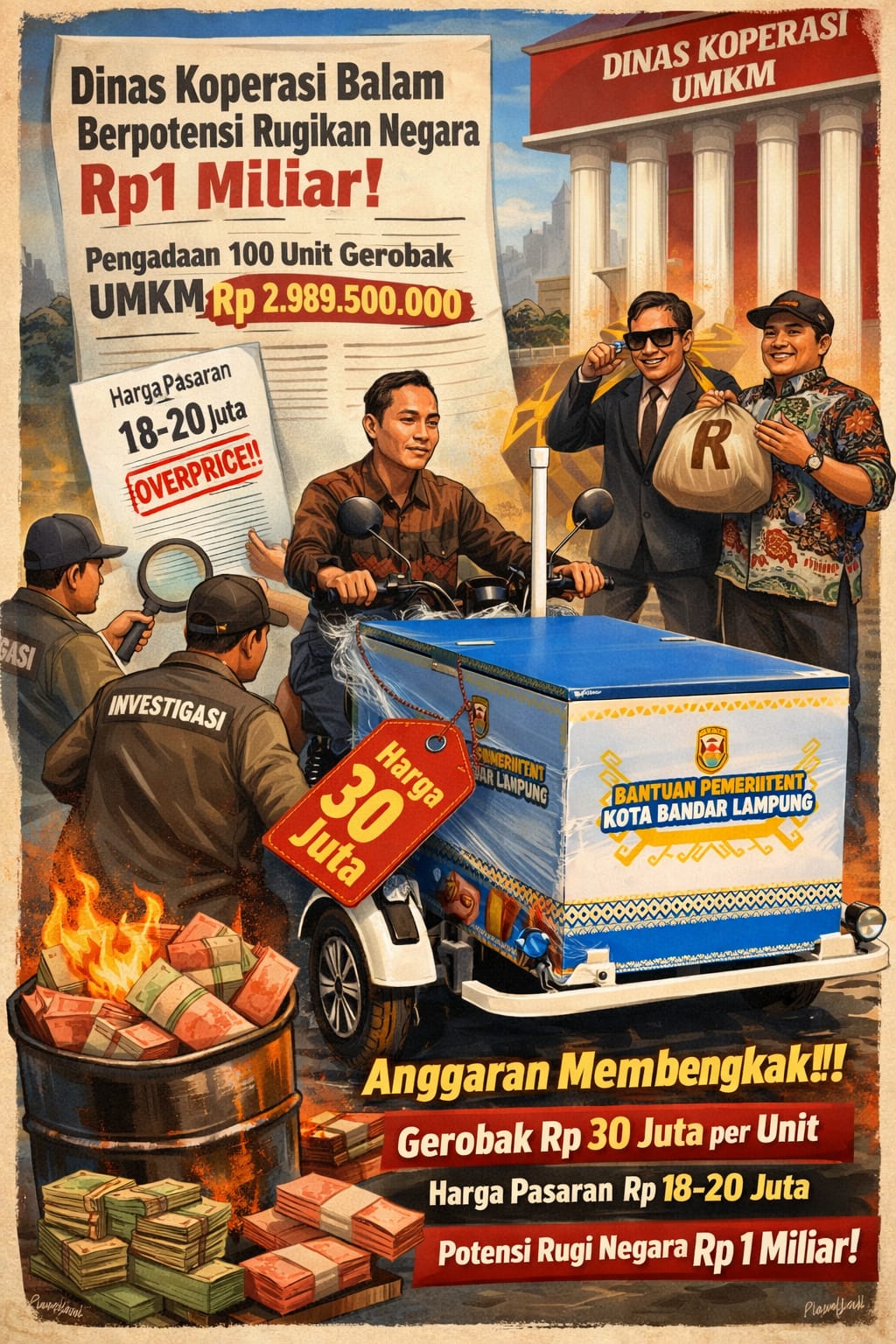 Integritasnews.co.id , Bandar Lampung -Proyek pengadaan 100 unit gerobak sepeda listrik oleh Dinas Koperasi dan UMKM Kota Bandar Lampung menjadi perhatian setelah muncul perbedaan signifikan antara harga kontrak dan kisaran harga pasar untuk produk dengan spesifikasi serupa.Pengadaan 100 unit gerobak sepeda listrik oleh Dinas Koperasi dan UMKM Kota Bandar Lampung menyedot anggaran sebesar Rp2.989.500.000, atau hampir Rp30 juta per unit.