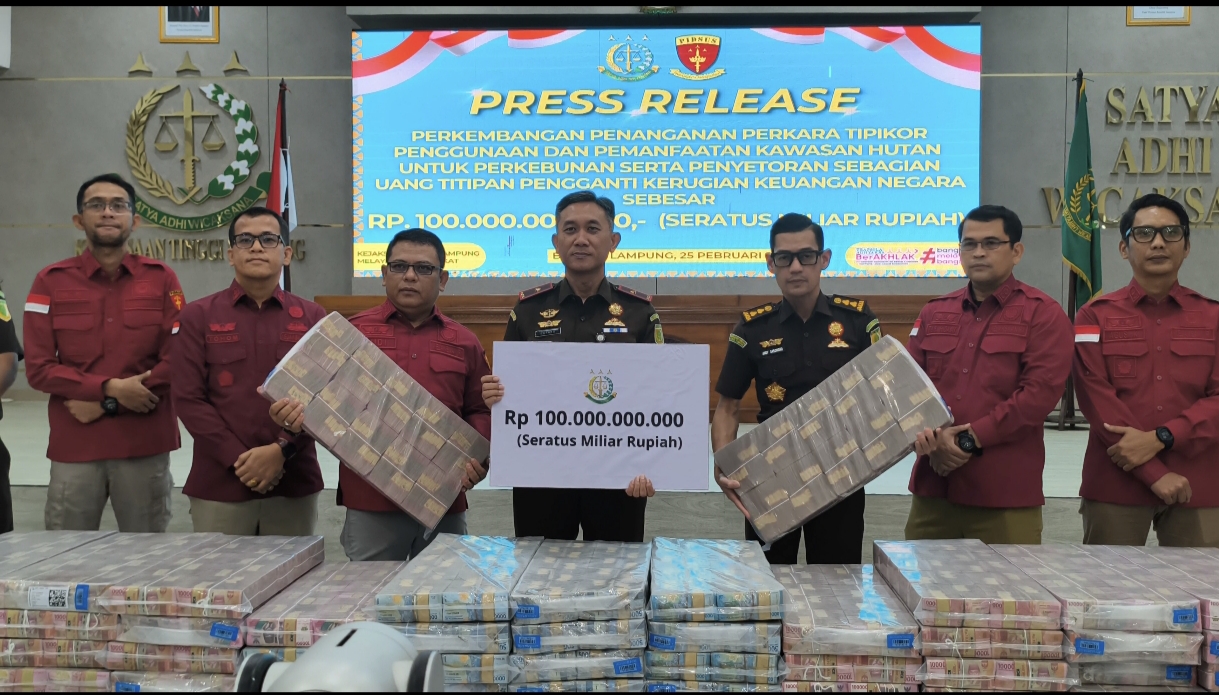 Integritasnews.co.id, Bandar Lampung -Kejaksaan Tinggi Lampung menerima titipan uang Rp100 miliar dari perusahaan berinisial PT P terkait penyidikan dugaan korupsi penggunaan kawasan hutan untuk perkebunan di Lampung.